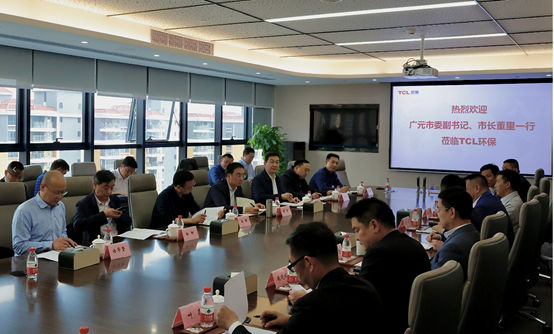 黄伟董事长对董里市长一行的到来表示热烈欢迎,并对广元市政府一直以来的大力支持表示感谢。黄伟董事长在会上详细介绍了TCL(集团)概况、TCL环保科技的业务布局、经营情况及未来的发展规划,四川TCL海能环境总经理梁传勇汇报了TCL环保科技布局在广元的铝灰全量化资源综合利用项目建设进度。