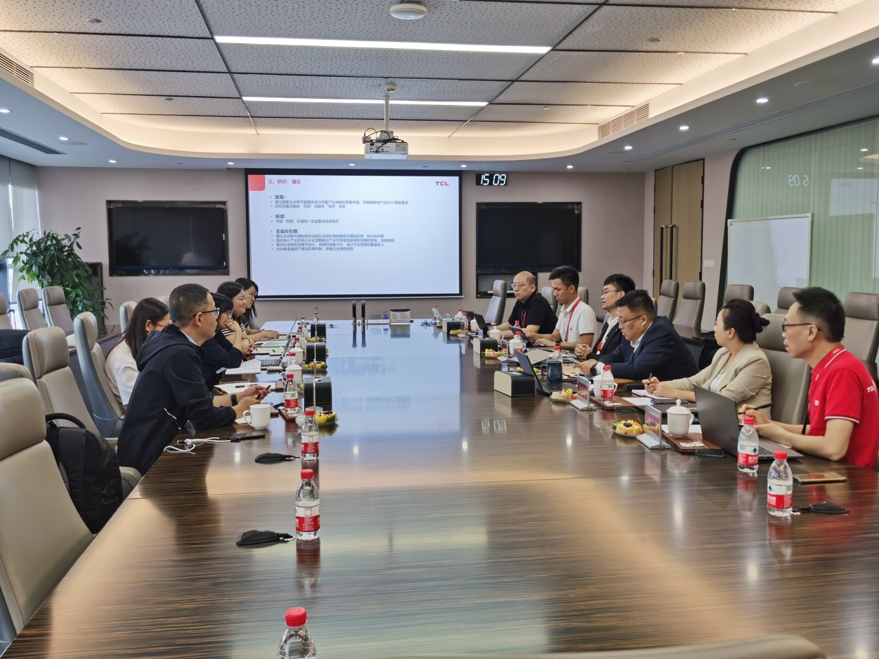 10月12日下午,TCL实业代表和TCL环保科技代表分别介绍了TCL实业双碳战略、实施路径及无废集团建设等绿色可持续发展规划,并与调研组在绿色贸易壁垒、国家双碳政策及标准、再生料循环再利用等领域进行深度的交流探讨。